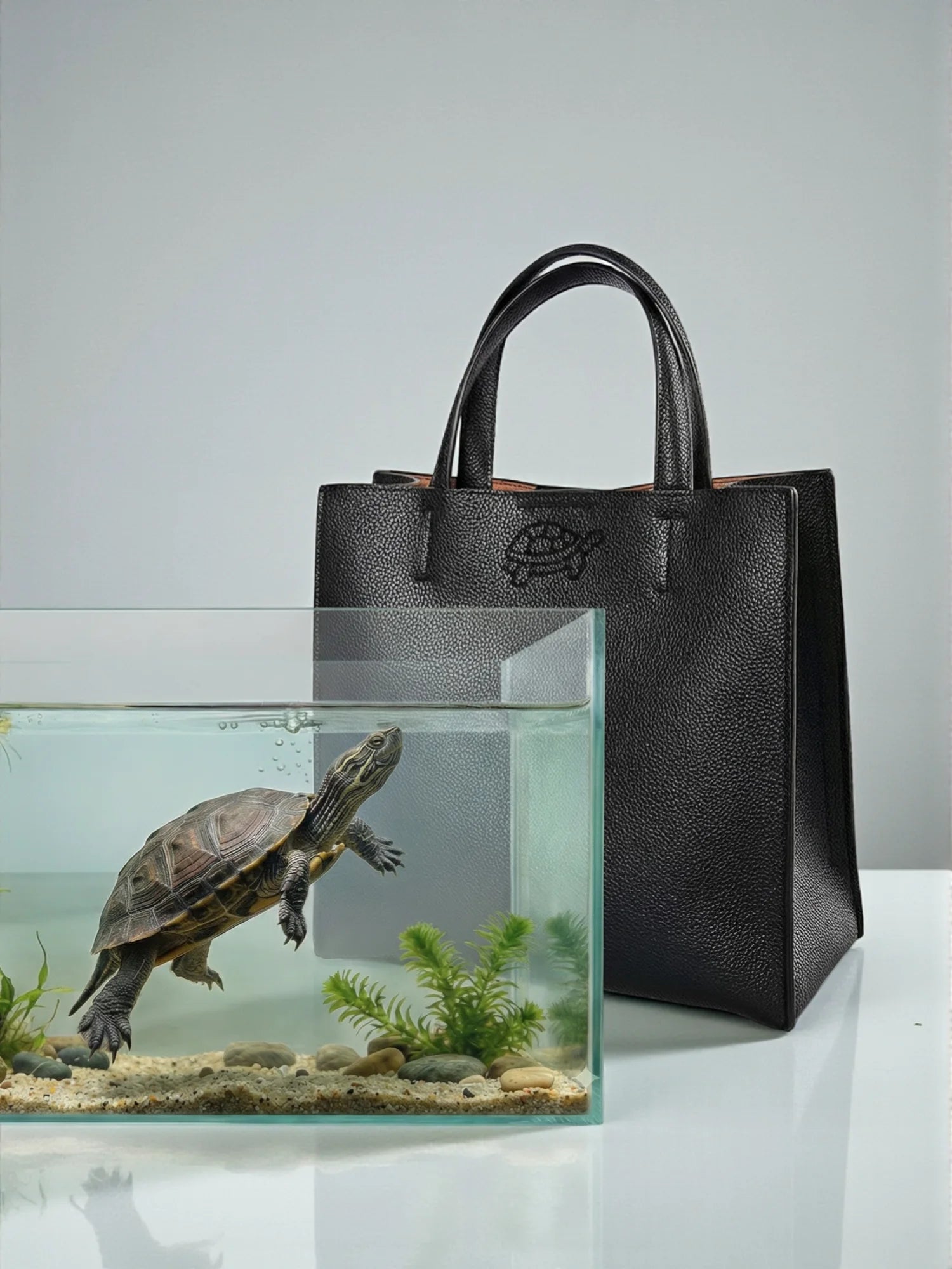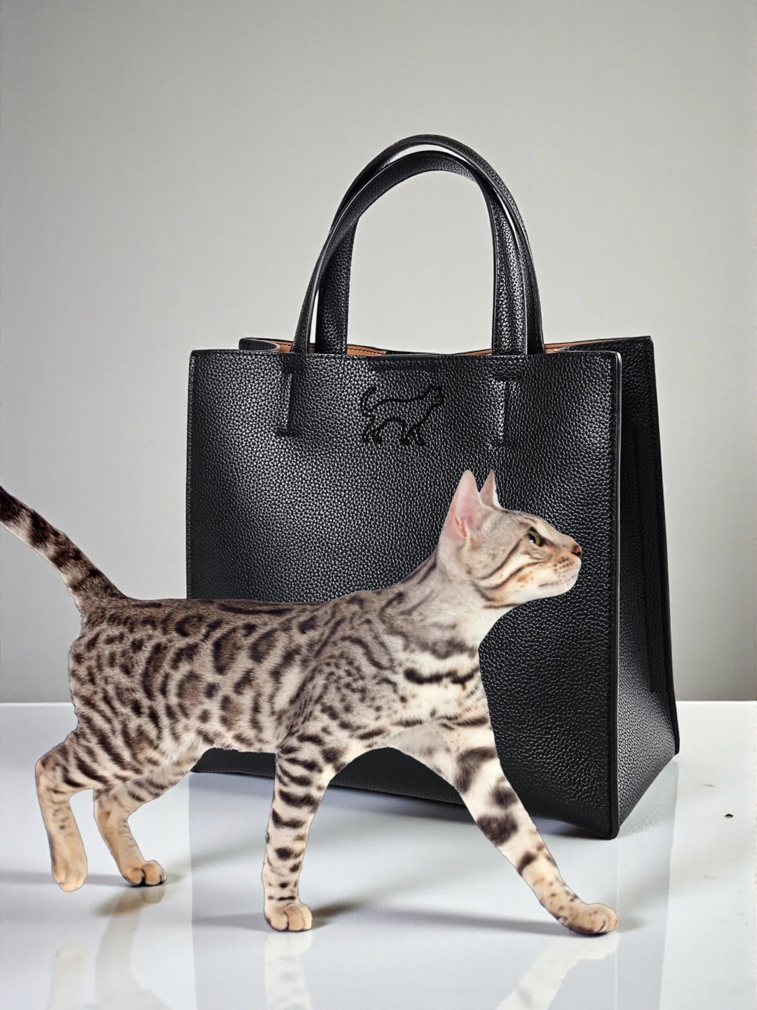 モチーフとなった動物のデザインが刻印されたハンドバッグです。