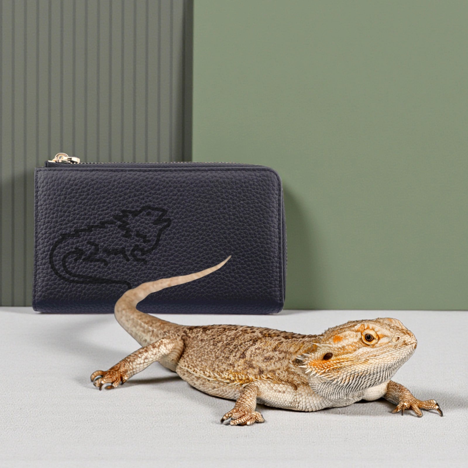 モチーフとなった動物のデザインが刻印された長財布です。