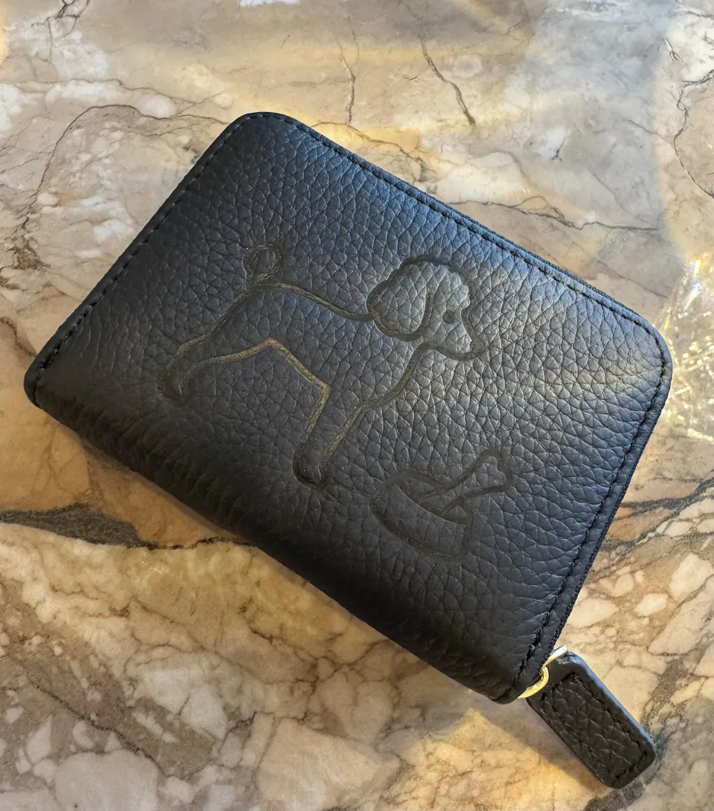 シンプルなトイプードルのデザインを刻印した、本革のミニ財布。