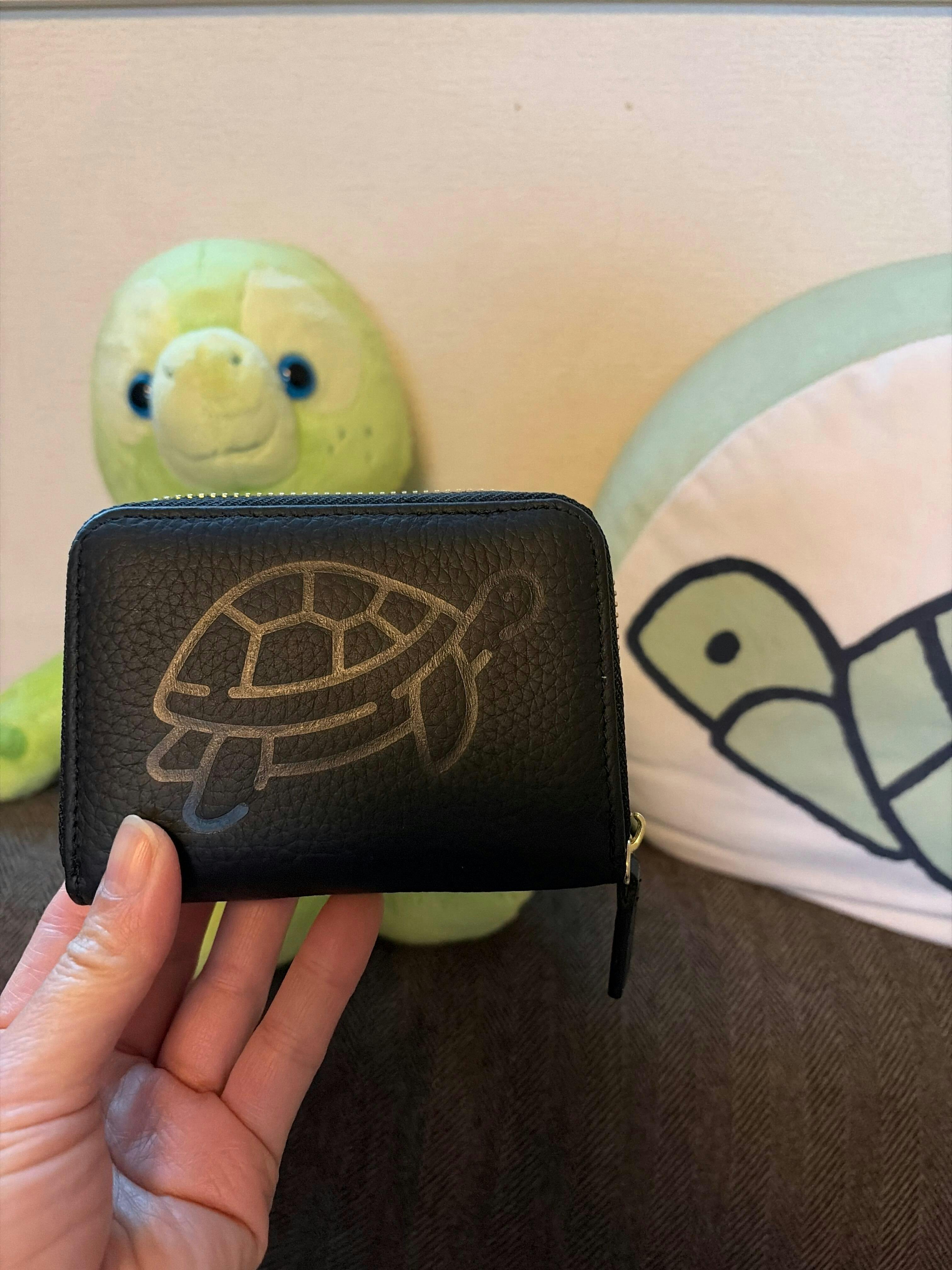みゆま カメ好きにはたまらない可愛らしいイラスト、お財布は大人っぽく良い感じです。